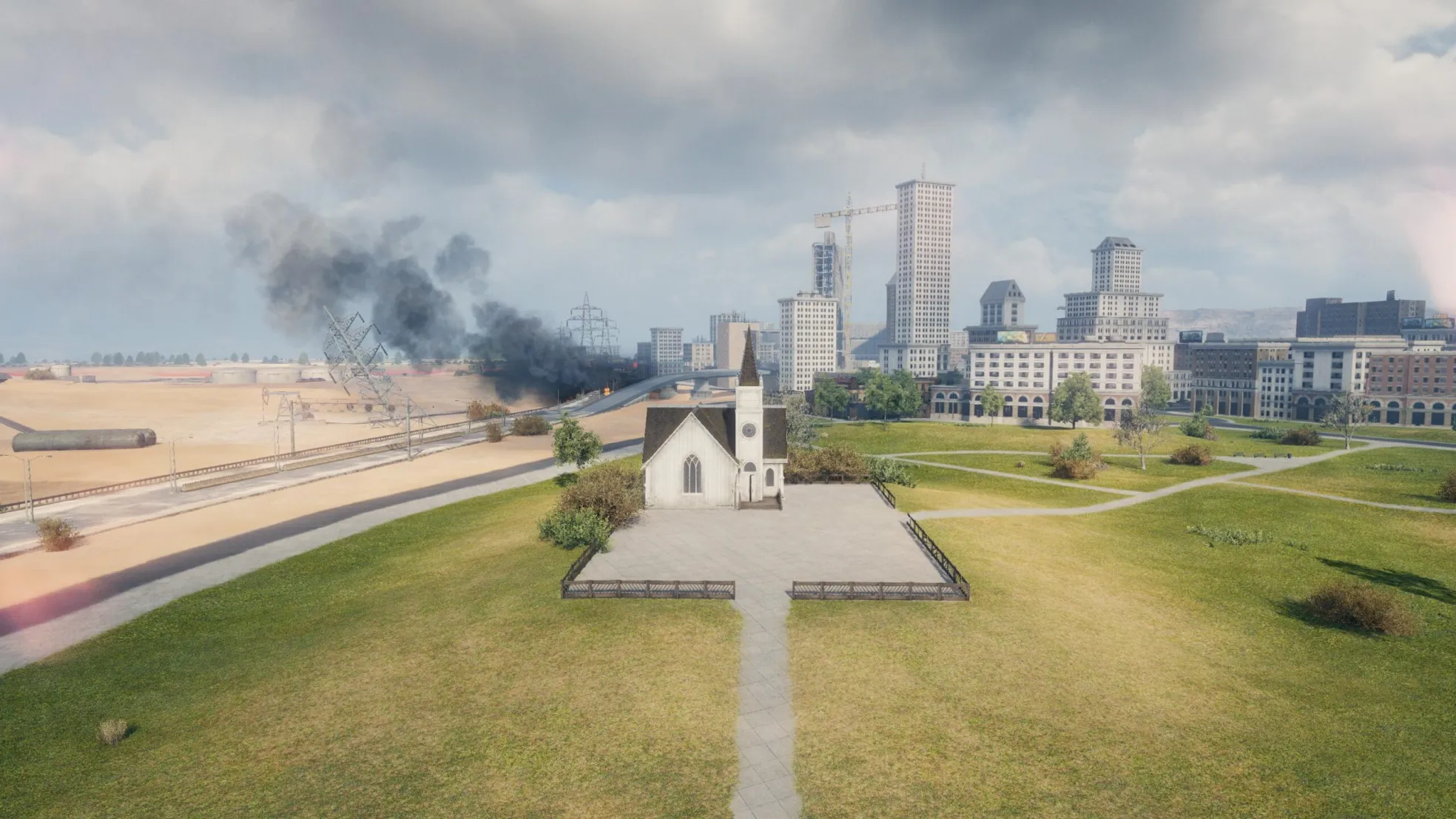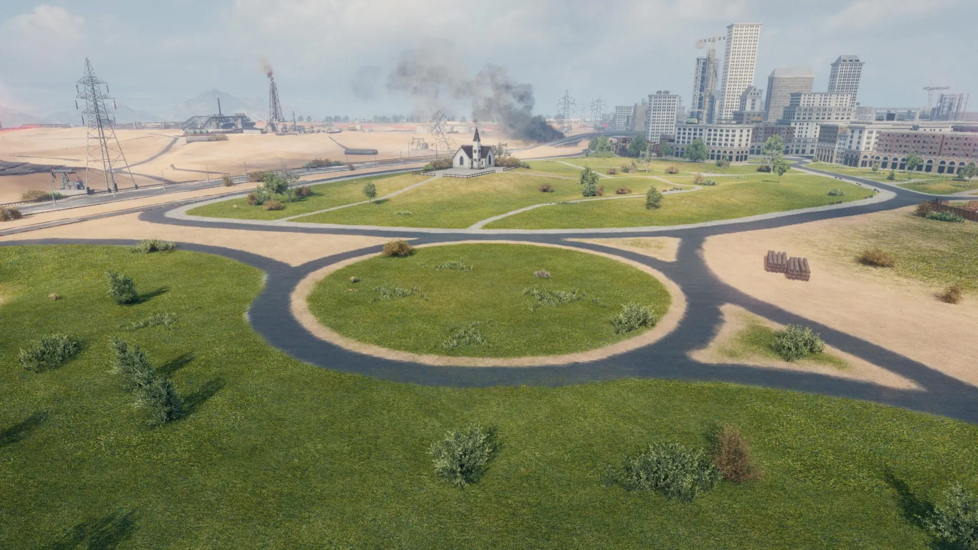To letnia lokacja o wymiarach 1200×1200 m, która może znajdować się gdzieś na południu Stanów Zjednoczonych. Oto główne obszary rozgrywki: