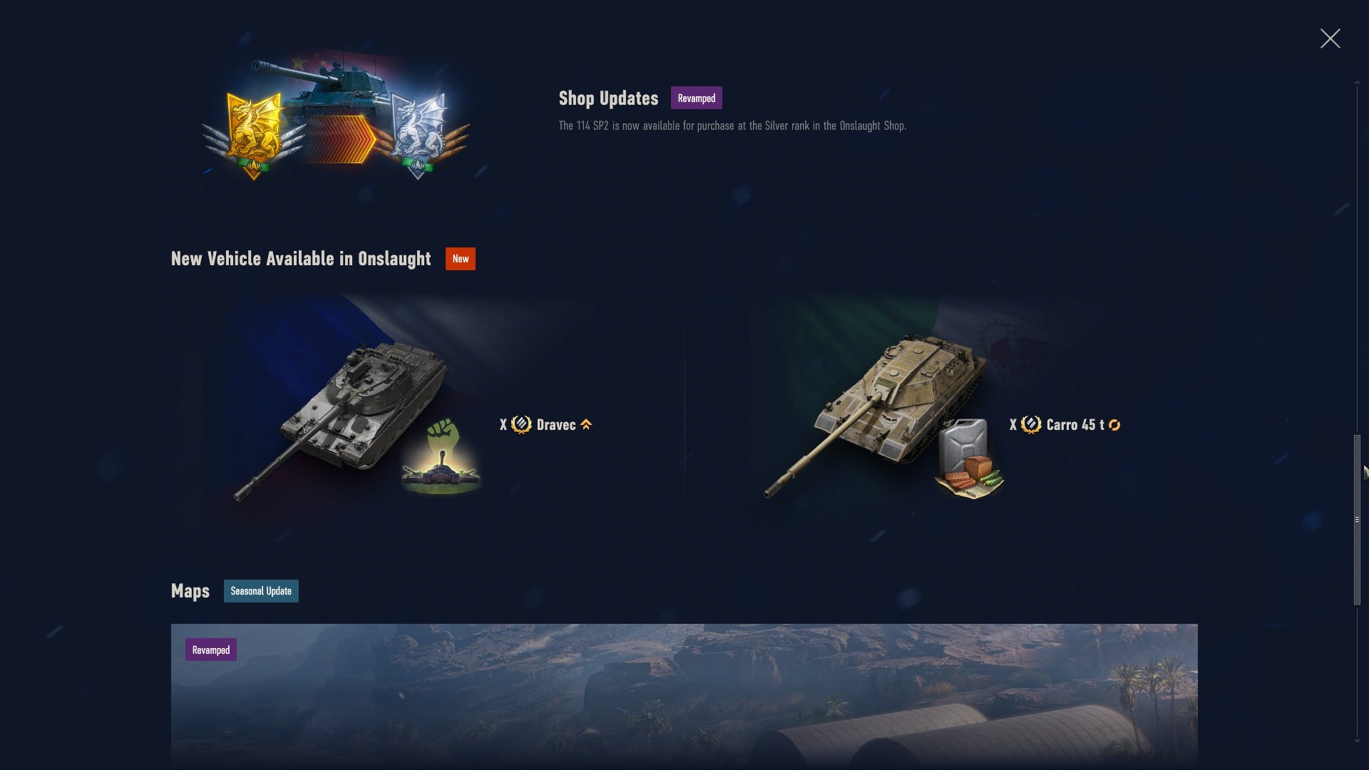 114 SP2 został przesunięty do sekcji rangi Srebrnej z sekcji rangi Złotej w w sklepie trybu. - 🗺️ Lotnisko i 🗺️ Dębina zostały przerobione w ramach tego trybu, a ponadto wprowadzono drobne poprawki na 🗺️ Erlenbergu i 🗺️ Bezpiecznej Przystani.